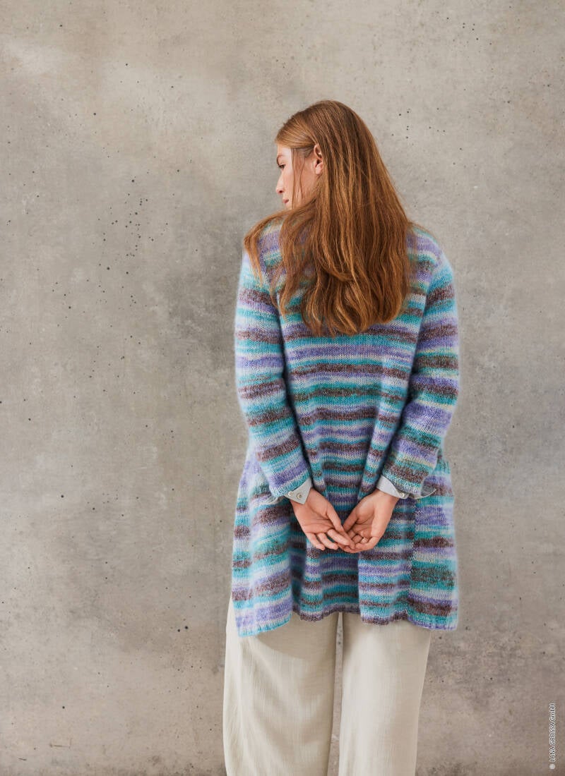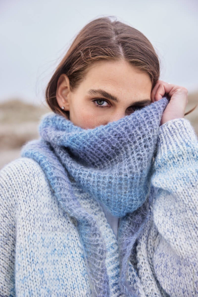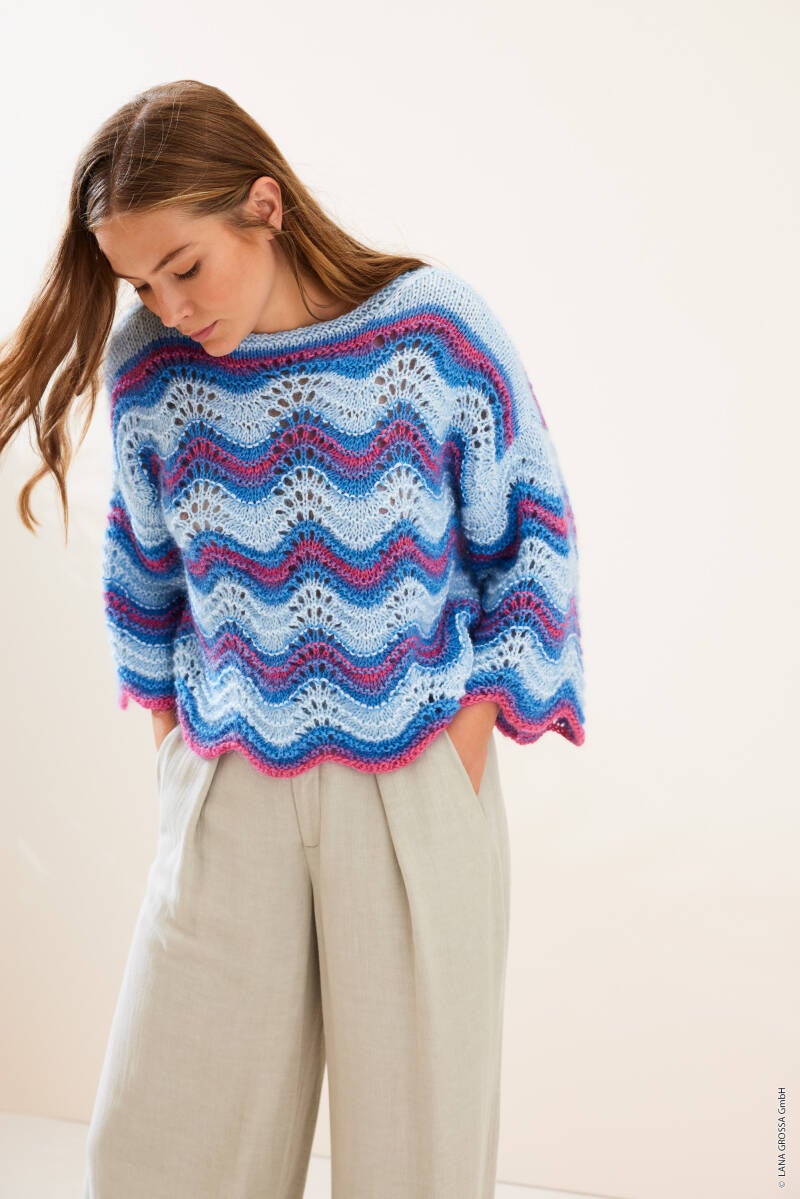 Deze trui wordt gebreid met 2 draden Silkhair samen