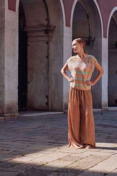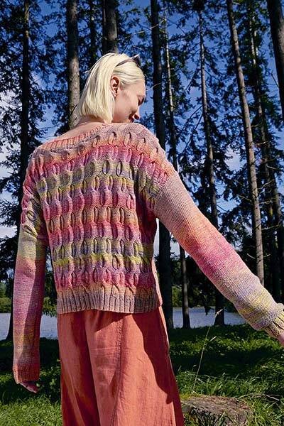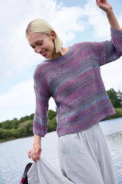 Tijdens het breien of haken creëert deze Mouliné-constructie een oppervlak met een gelijkmatige kleurverdeling die een iriserende, bijna hypnotiserende effecten creëert die doet denken aan een illusie of een mirna.