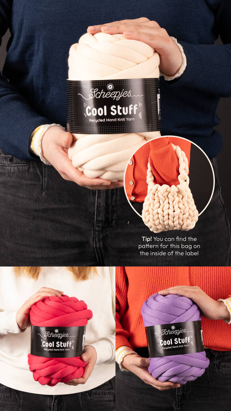 Naalden zijn niet nodig: de unieke structuur en stevigheid maken Cool Stuff perfect voor handbreien.