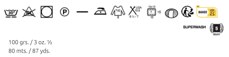 Dit is dik garen, wij raden aan om te breien met breinaalden nr. 6,5-7.