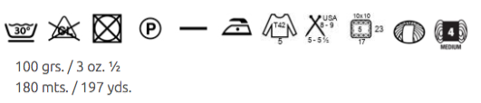 Elke bol garen weegt 100 gram en heeft 180 meter.