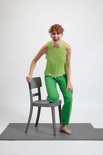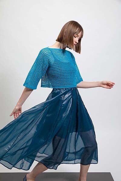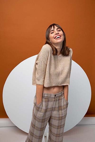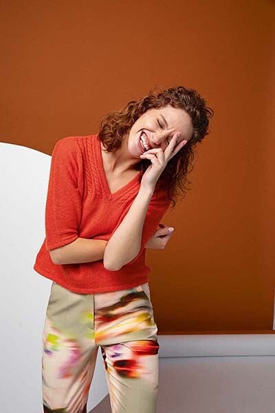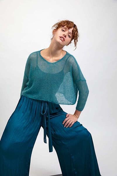 Denk aan bekabelde truien in een diepe, chocoladebruine, delicate kanten trui in een lichtblauw-grijze of lichte zomertops in felrood.