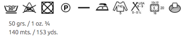 Elke bol garen weegt 50 gram en heeft 140 meter.