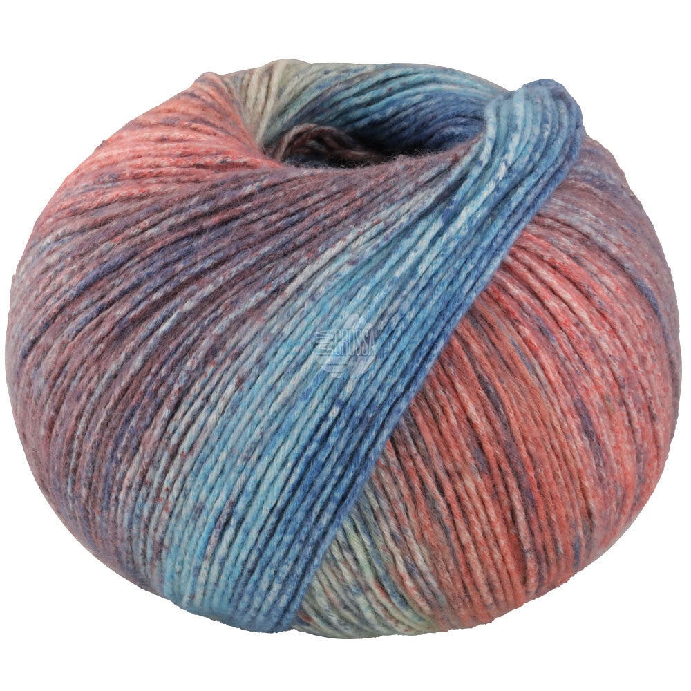 Zacht en luchtig katoenen garen met een veelkleurig streepeffect