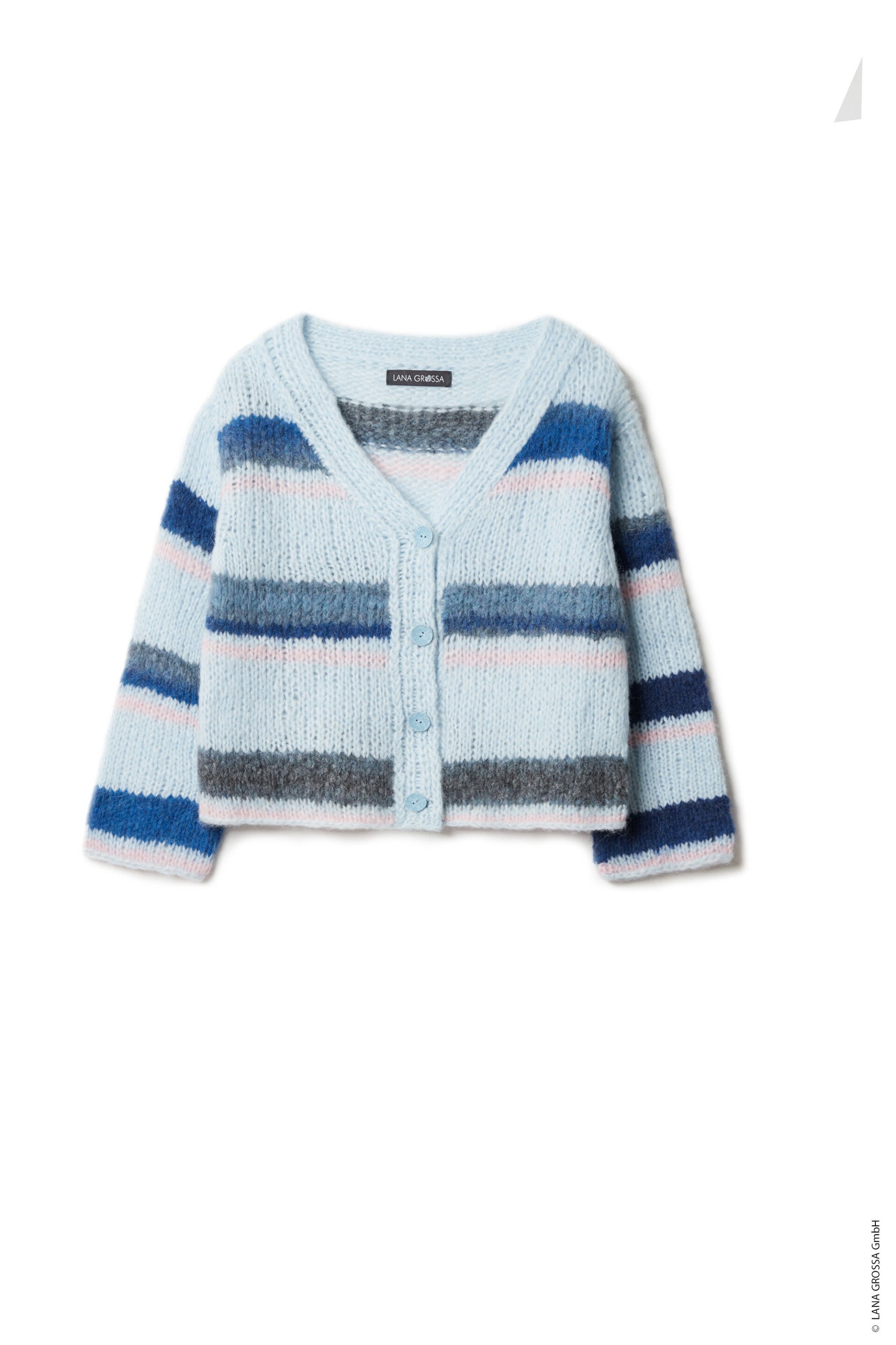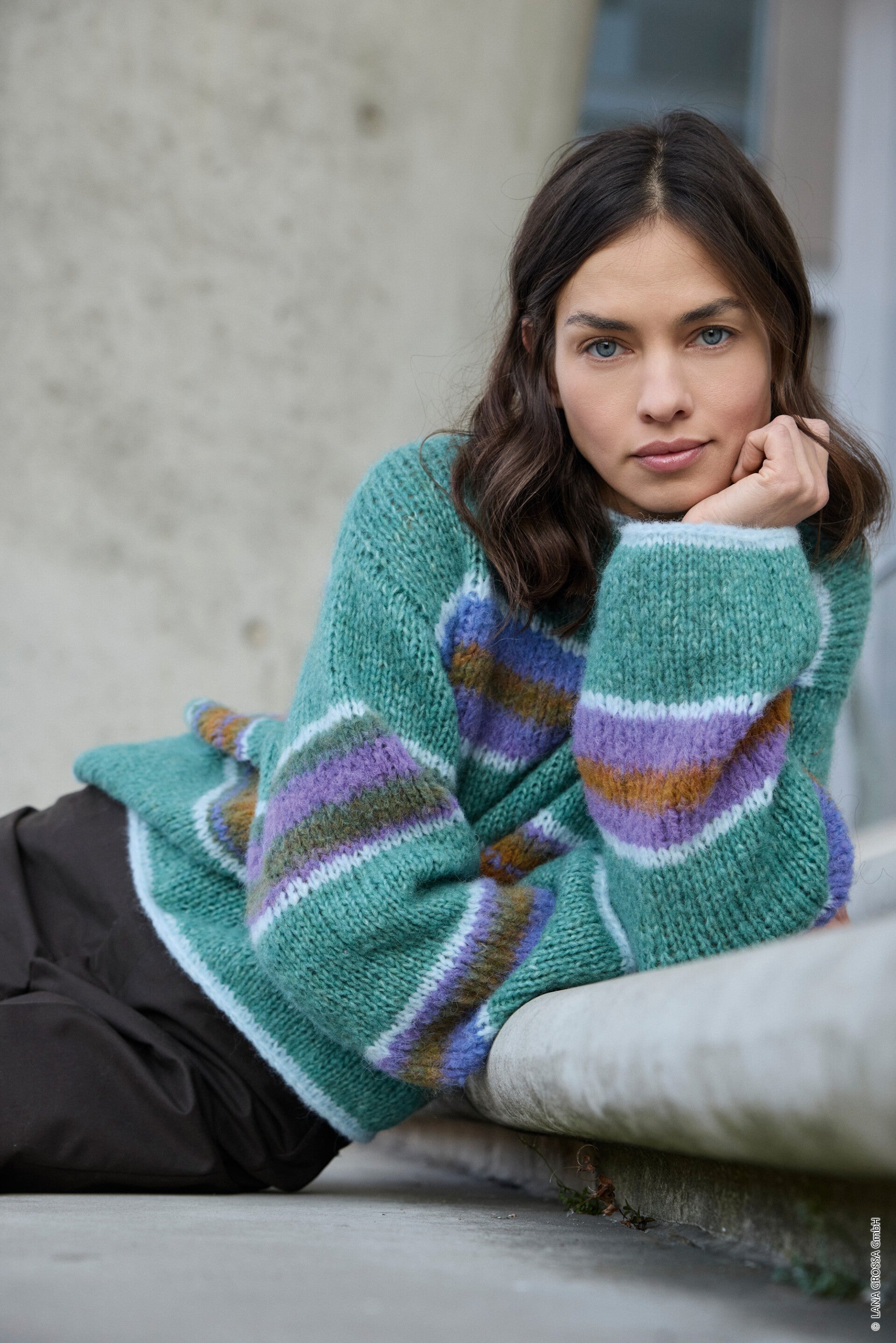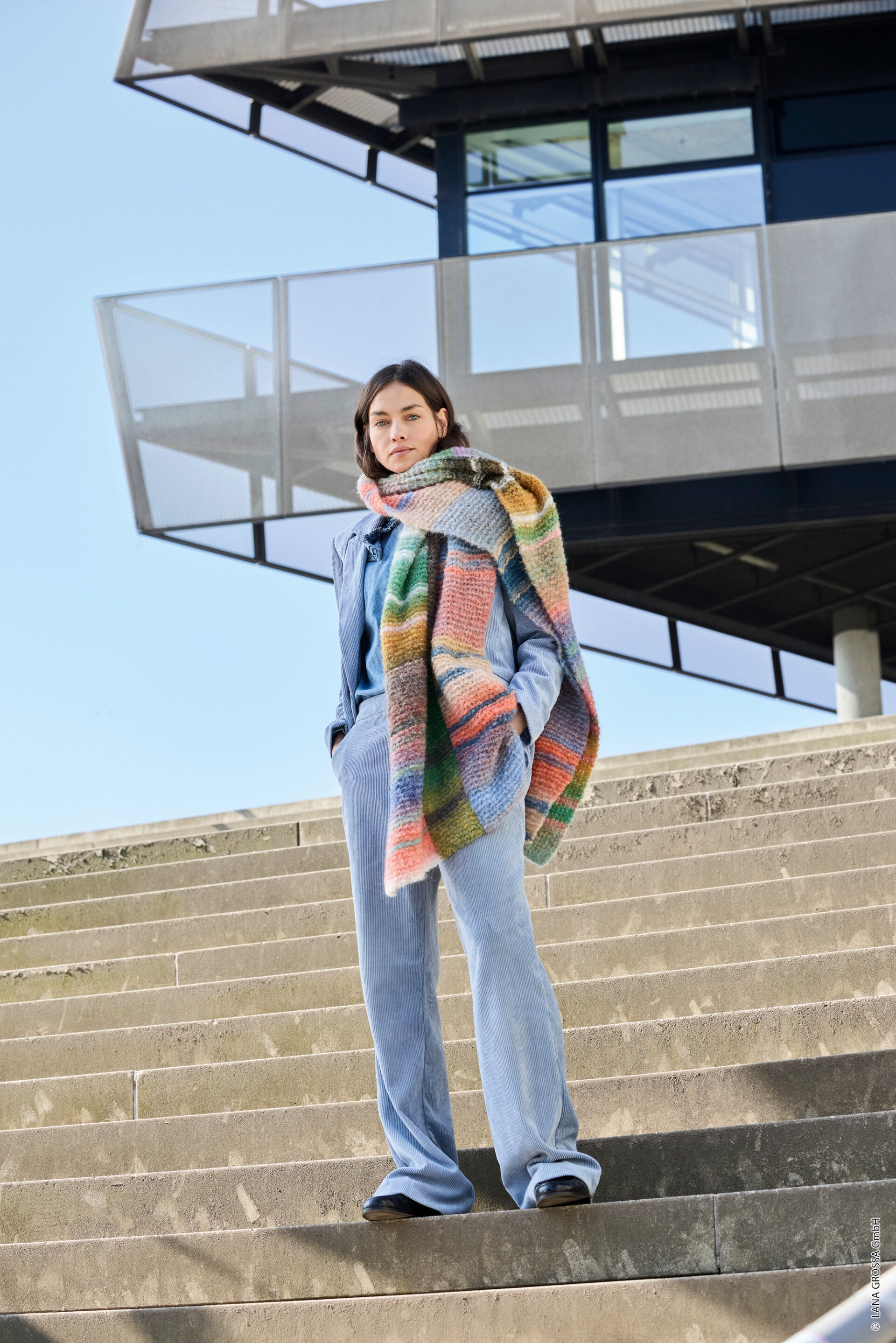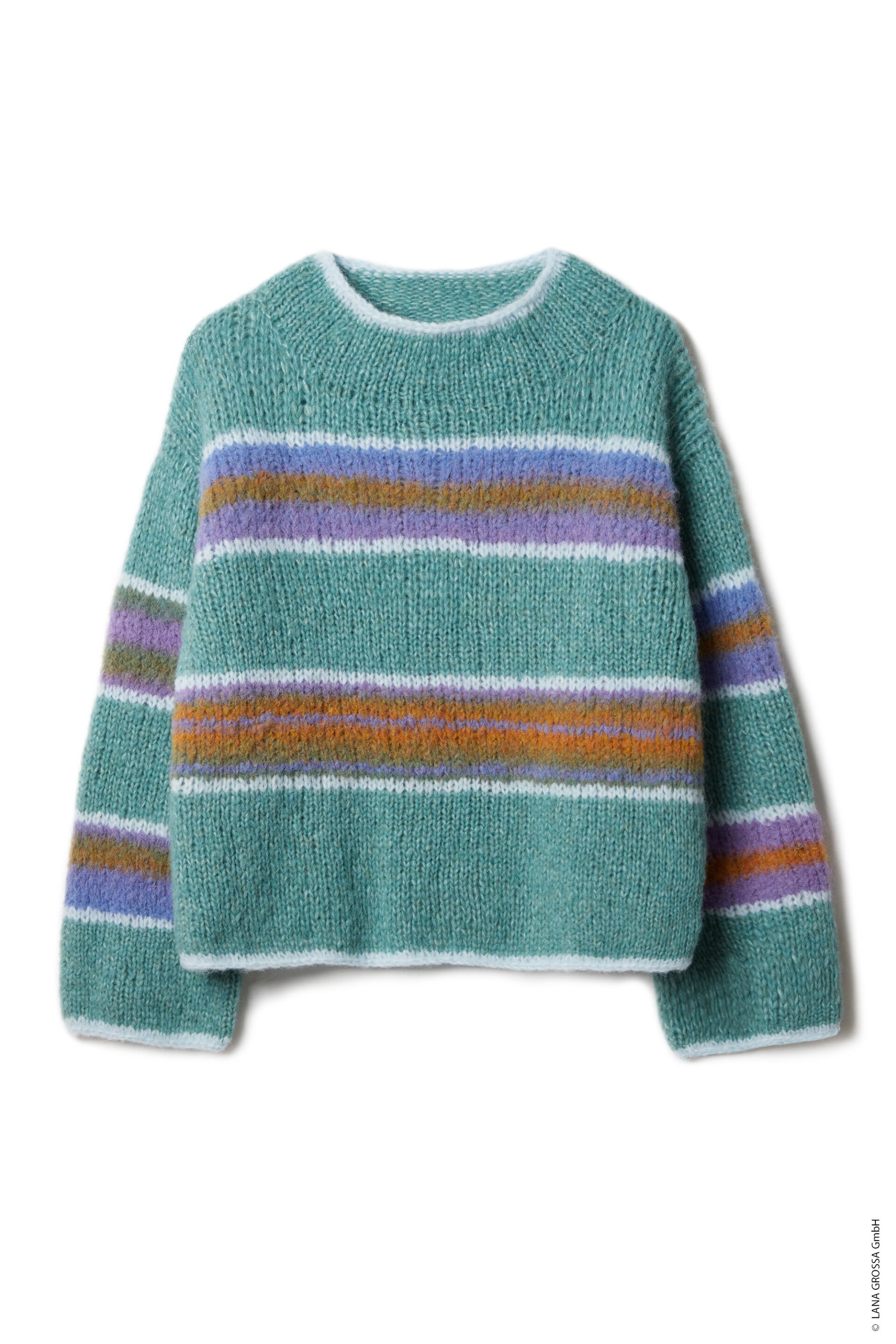 Dit losjes gedraaide garen, bekend om zijn kenmerkende dramatische franje-effect, heeft nu ook gedurfde royale strepen.