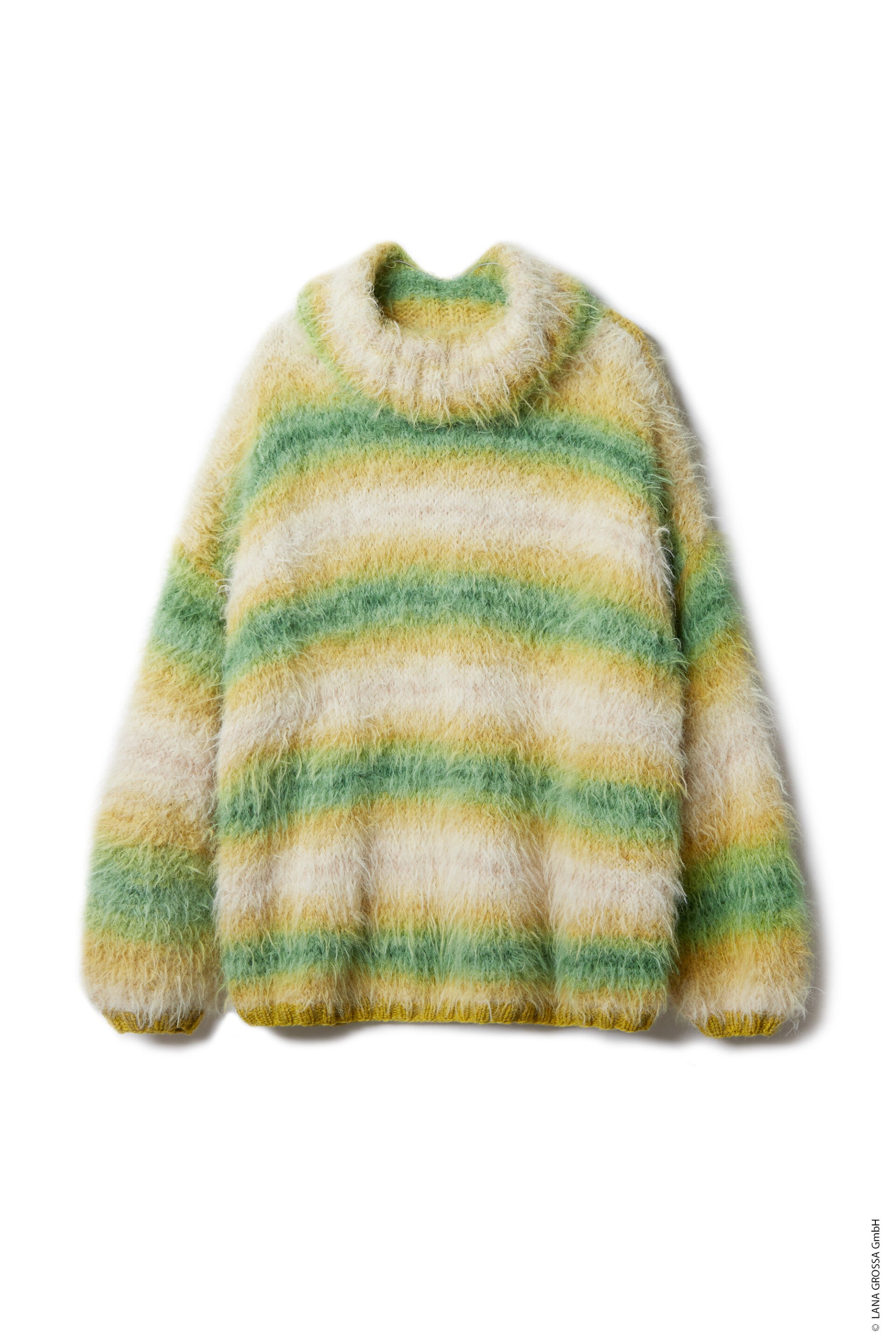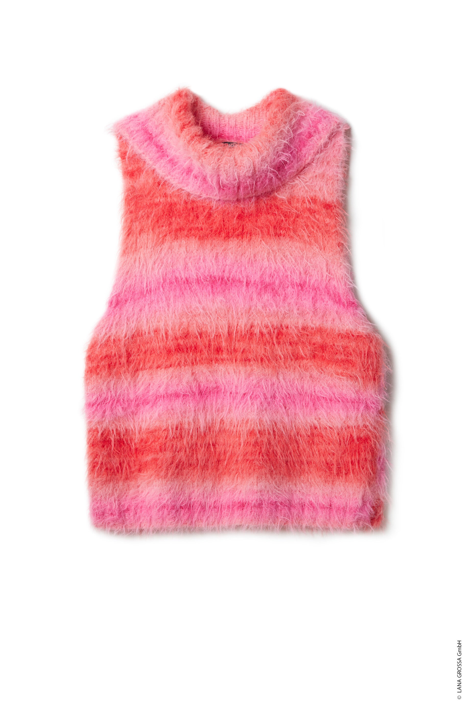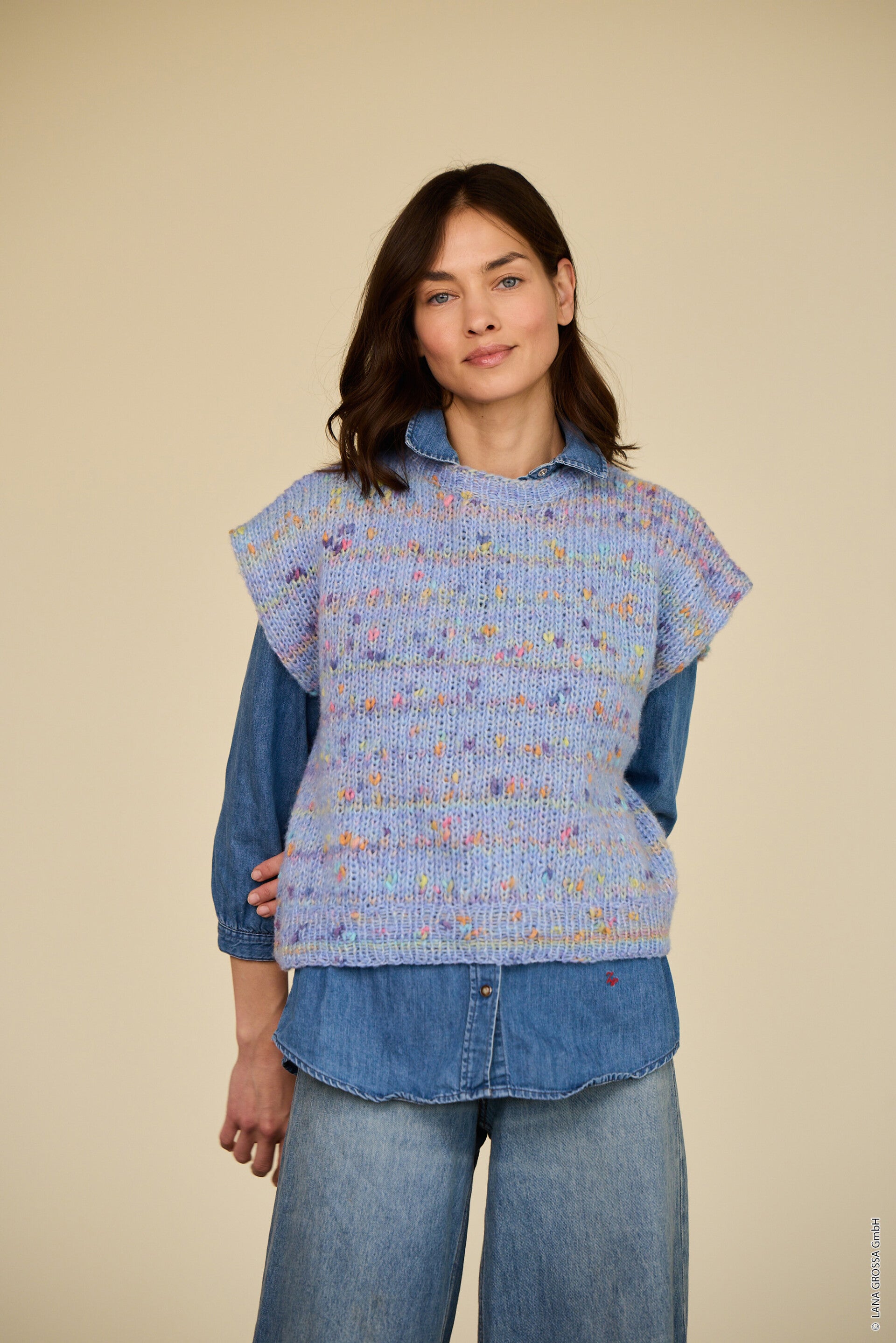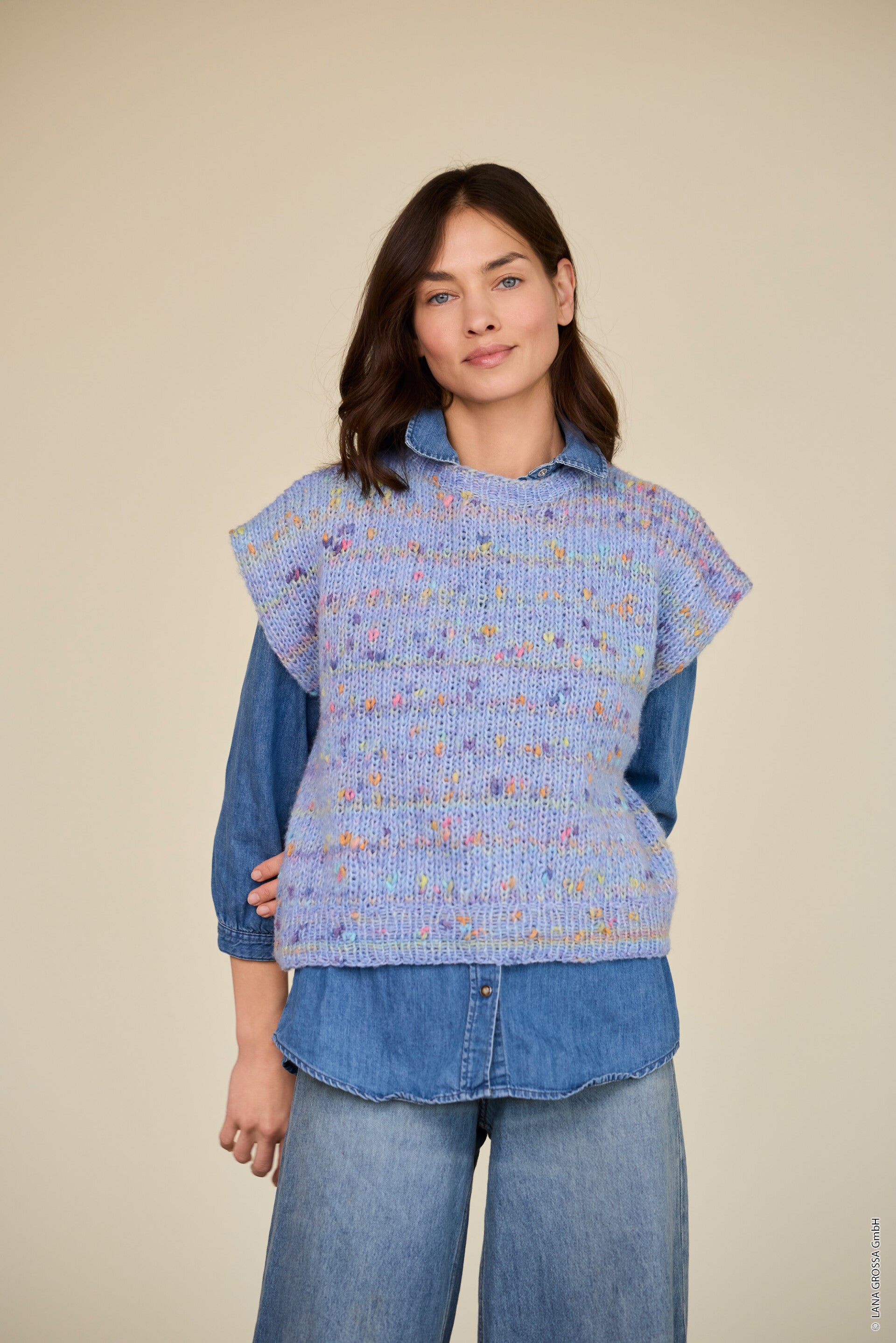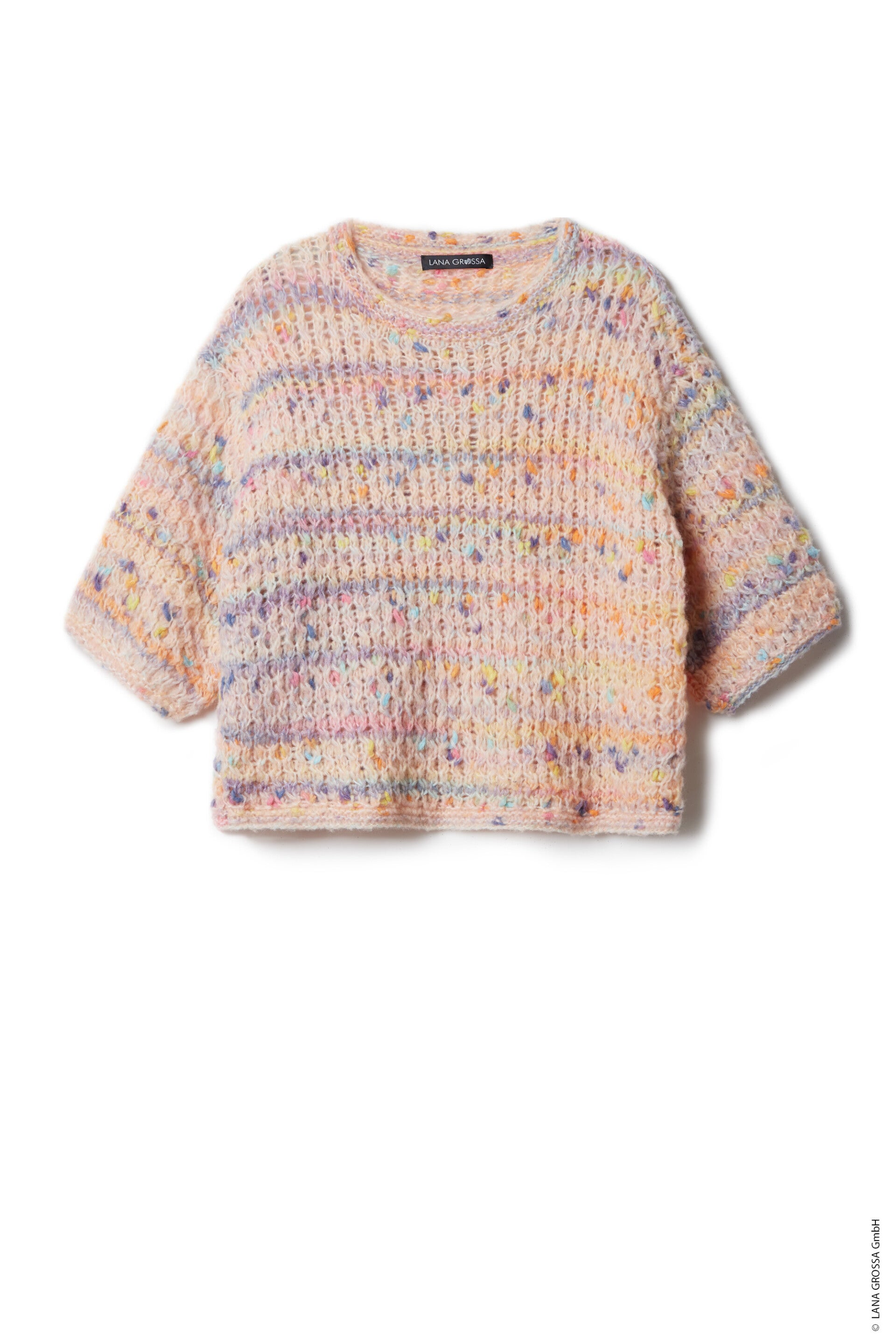 Dit losjes gedraaide garen, bekend om zijn kenmerkende dramatische franje-effect, heeft nu ook gedurfde royale strepen.