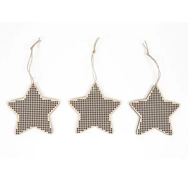 Elk ornament in deze collectie is gemaakt van MDF-hout en voorzien van gaatjes voor het kruissteekpatroon.