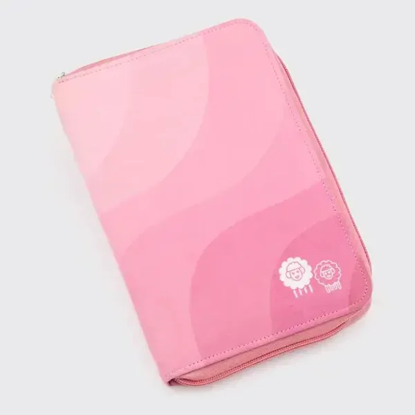 De set wordt geleverd in een mooi lichtroze envelopetui van stof.