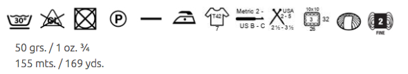 Elke bol garen weegt 50 gram en heeft 155 meter.