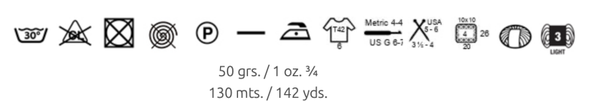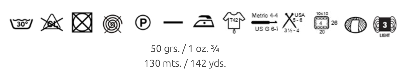 Aan te bevelen voor breinaalden met nr. 3,5 - 4 of haaknaalden met nr. 4 - 4,5.